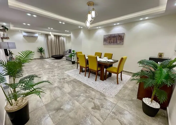 El 3Br Luxury Apt Near Auc NewEl Cairo es un lugar estupendo para alojarse en el barrio Nuevo Cairo, a unos 25 minutos a pie del Gravity Code. Los huéspedes pueden relajarse y contemplar las vistas al jardín desde la terraza de este apartamento de 160 m².